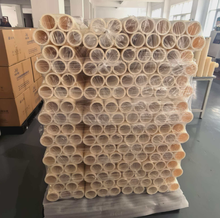 ພວກເຮົາໄດ້ປັບປຸງການອອກແບບການຫຸ້ມຫໍ່ຢ່າງສົມບູນແບບສໍາລັບ batch ຂອງທໍ່ຫຼັກ ABS ນີ້ເພື່ອຮັບປະກັນຄວາມປອດໄພການຂົນສົ່ງແລະການປົກປ້ອງຜະລິດຕະພັນ. ການຂົນສົ່ງແຕ່ລະຄົນໃຊ້ການຫຸ້ມຫໍ່ palletized ມາດຕະຖານ: ທໍ່ທໍາອິດຖືກຫຸ້ມຢູ່ໃນຖົງປ້ອງກັນຝຸ່ນທີ່ມີຄວາມໂປ່ງໃສສູງເພື່ອປ້ອງກັນການເຂົ້າໄປໃນຂີ້ຝຸ່ນແລະຄວາມຊຸ່ມຊື່ນ; ຫຼັງຈາກນັ້ນ, ເສີມດ້ວຍຮູບເງົາ cling ຊັ້ນອາຫານຫຼາຍຊັ້ນເພື່ອເສີມຂະຫຍາຍການຕໍ່ຕ້ານຜົນກະທົບແລະການປົກປ້ອງຄວາມຊຸ່ມຊື່ນ; ຊັ້ນນອກສຸດມີກ່ອງກະດາດກະດາດ corrugated custom ຫຸ້ມຫໍ່ສິນຄ້າຢ່າງແຫນ້ນຫນາ, ຮັບປະກັນດ້ວຍສາຍເຊືອກສີຂຽວເພື່ອຮັບປະກັນໂຄງສ້າງການຫຸ້ມຫໍ່ໂດຍລວມທີ່ຫມັ້ນຄົງແລະເຊື່ອຖືໄດ້. ດັ່ງທີ່ສະແດງໃຫ້ເຫັນ, ສິນຄ້າຫຸ້ມຫໍ່ໄດ້ຖືກ stacked ຢ່າງເປັນລະບຽບທີ່ມີແຄມແຫຼມ, ສະແດງໃຫ້ເຫັນຢ່າງເຕັມສ່ວນຂອງພວກເຮົາເປັນມືອາຊີບແລະຄວາມລະມັດລະວັງໃນການປົກປ້ອງການຂົນສົ່ງ.